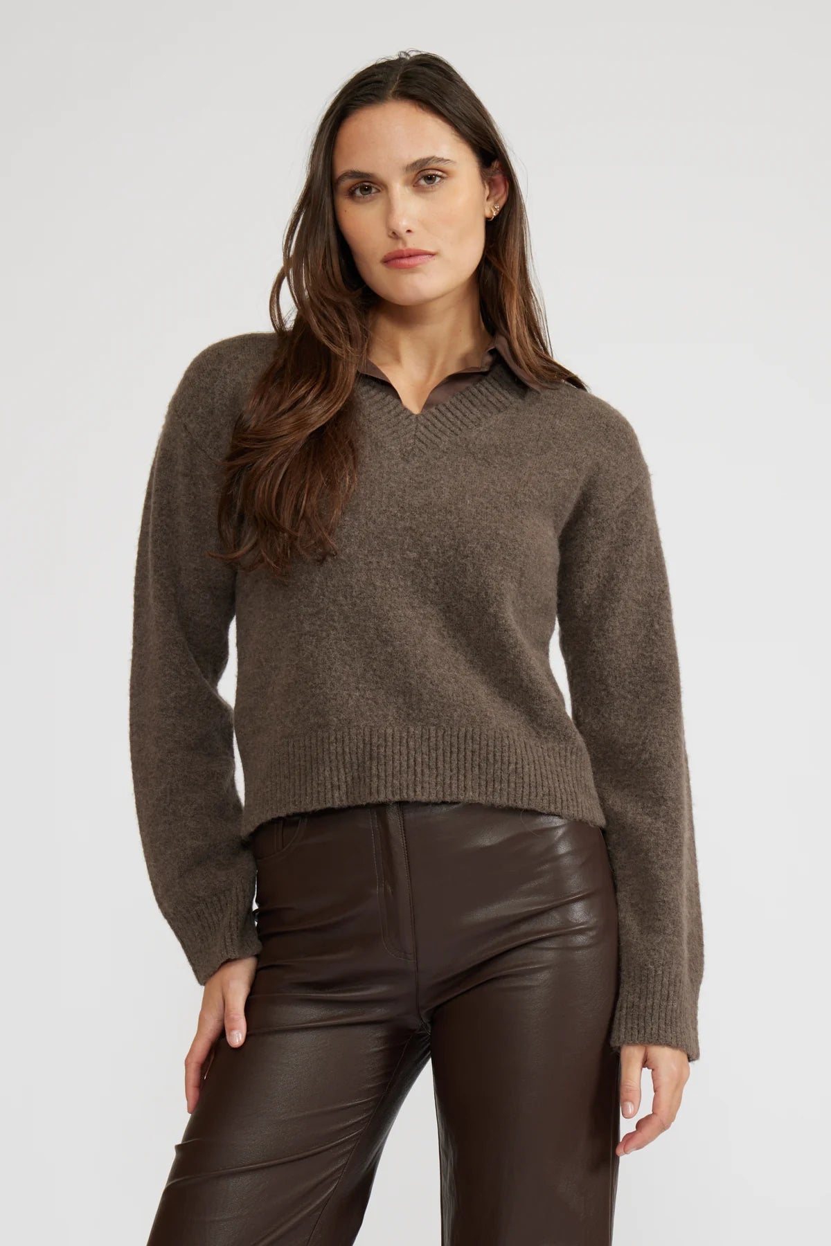 Elevate your style with the Lucy Paris Oren Mixed Media Top, featuring a cozy long-sleeve sweater shirt paired with a sleek satiny faux collar. This design creates the effortless illusion of layered dressing, combining comfort and sophistication in one piece. Perfect for those who want a polished look without the bulk of multiple shirts, it seamlessly transitions from day to night with ease. Experience the blend of casual warmth and elegant detail that sets this top apart in your wardrobe