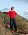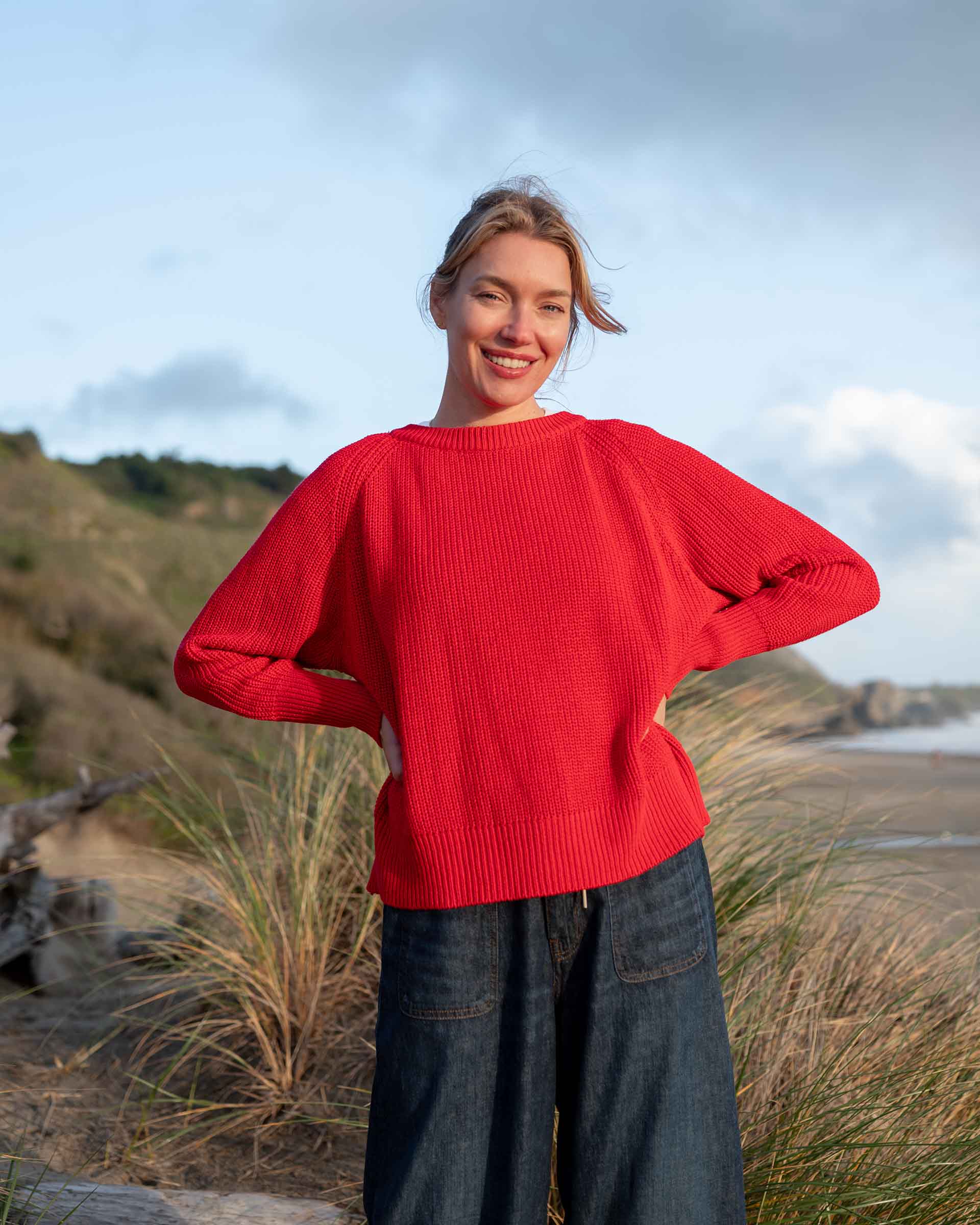 We crafted the perfect sweater for every trip by the sea. This fisherman knit in an intentionally oversized fit will keep you warm without making you hot. Throw it over your shoulders for a pop of color, wear it on it's own or layer it.