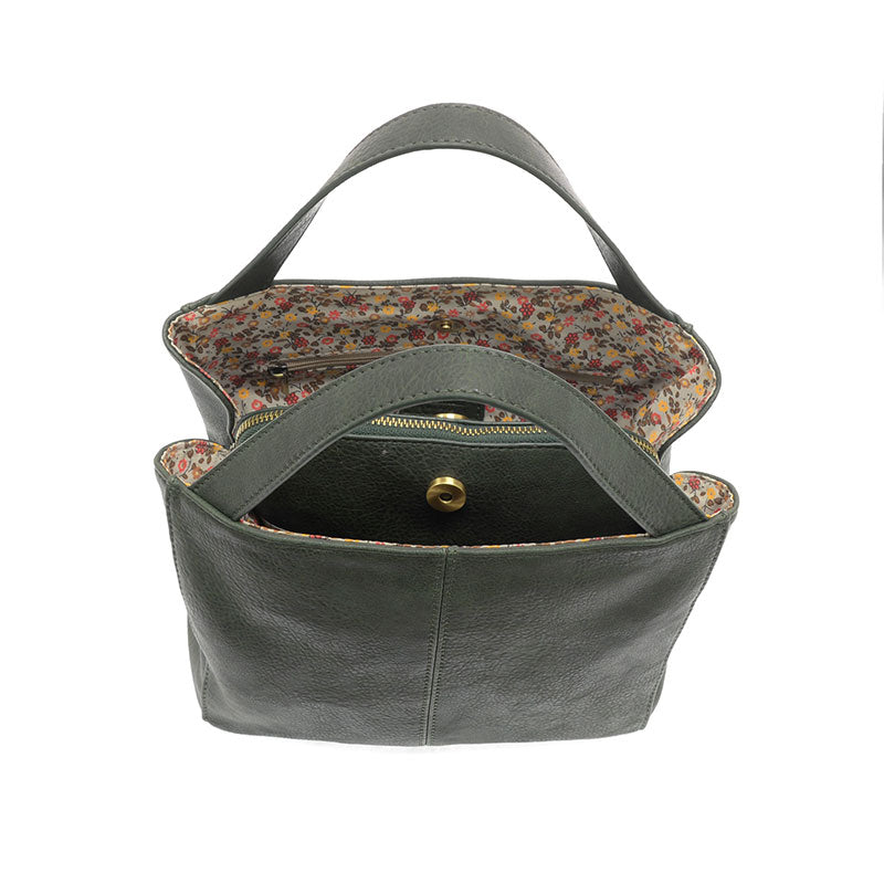 Meet Brandi, our new stylish Crossbody that is cute and compact! This sweet bag is made in our antiqued vegan leather and accented with a soft floral lining with three separate interior compartments to keep you organized. Carry by the top handles or wear as a crossbody, either way you are ready for your day!