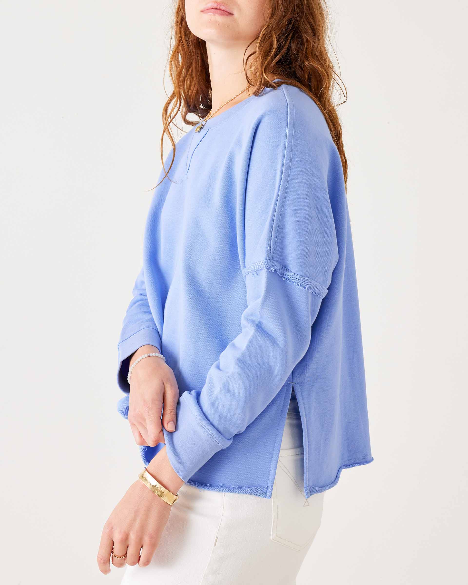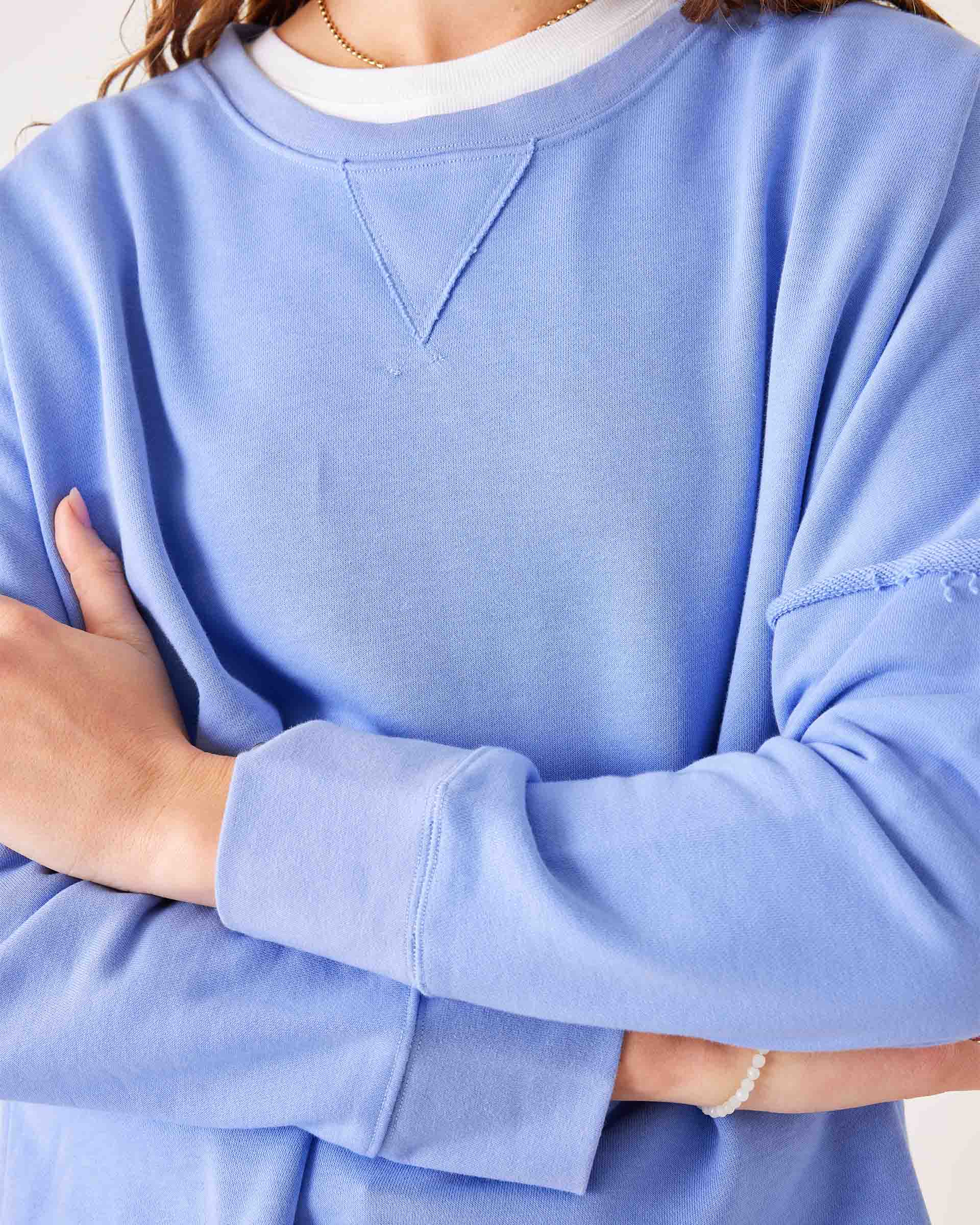 The Frenchie, made with super-soft French terry, is lightweight and stretchy. This crewneck maintains a flattering shape perfect for the beach, walks, or lounging.