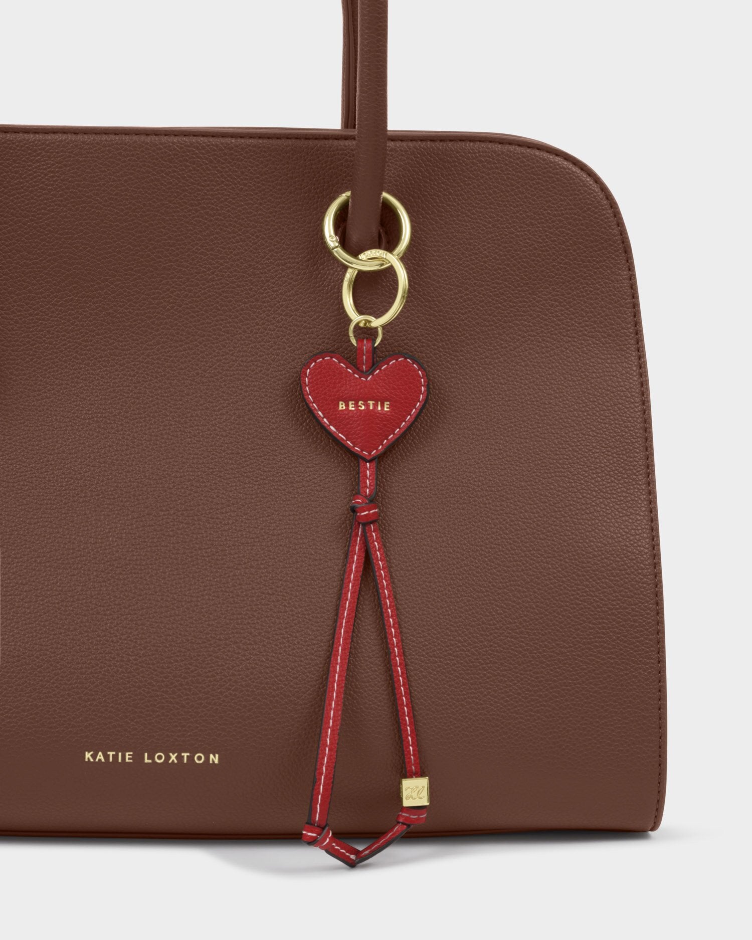 Our Heart Bag Charm Keychain in Red features a heart-shaped design, stamped with the sweet sentiment. Finished with gold-tone signature charm detailing and contrast wax accents, it makes the perfect gift for someone special.