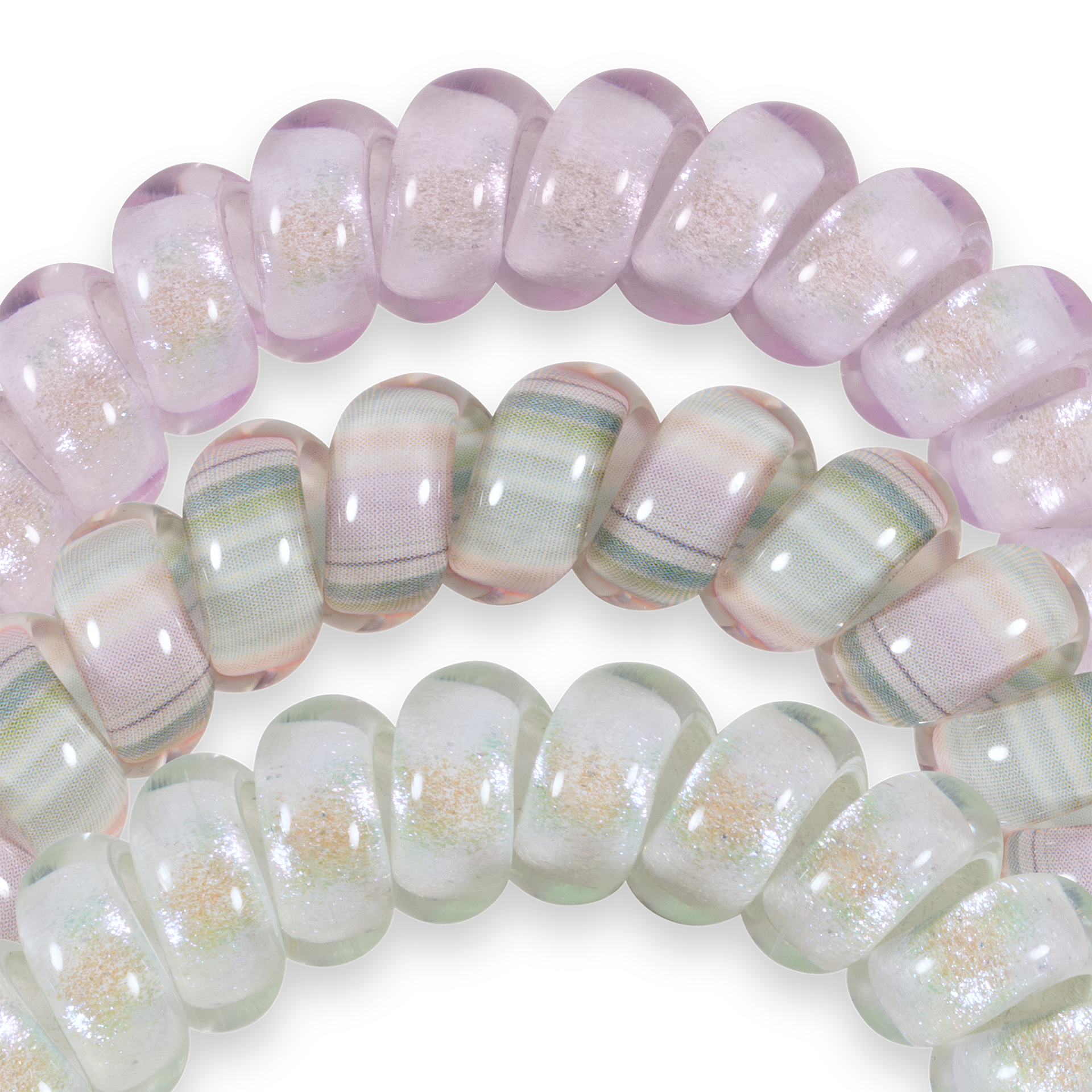 Purple and Green Shimmer offer a strong grip without damage, doubling as a chic wrist accessory when not in use. Your new favorite hair essentials all year round.