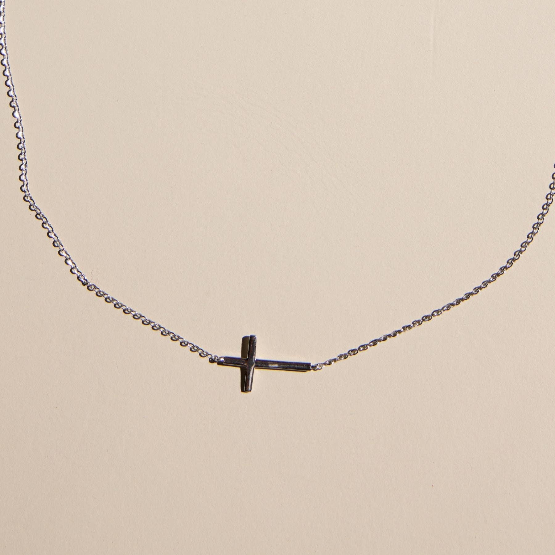 Silver Sideways Cross Necklace