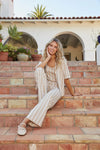 Add a pop of fun to your wardrobe with the Lucy Paris Fiji Knit Shirt! This button-up shirt features short sleeves and is made from a soft blend of rayon and nylon. Perfect for everyday wear. Complete this look with our Bora Crop Top and Tahiti pant.