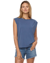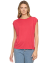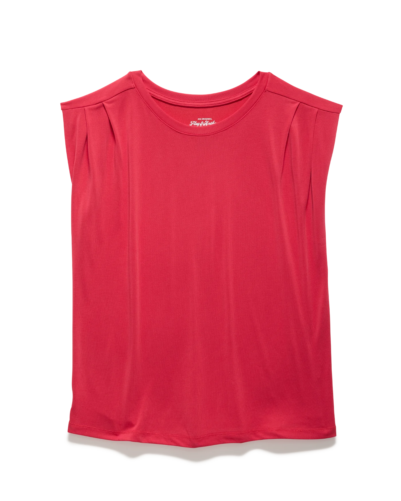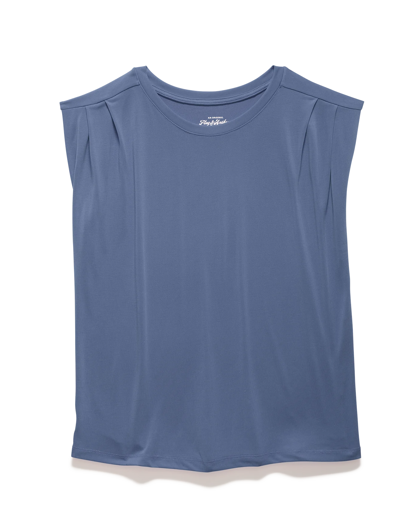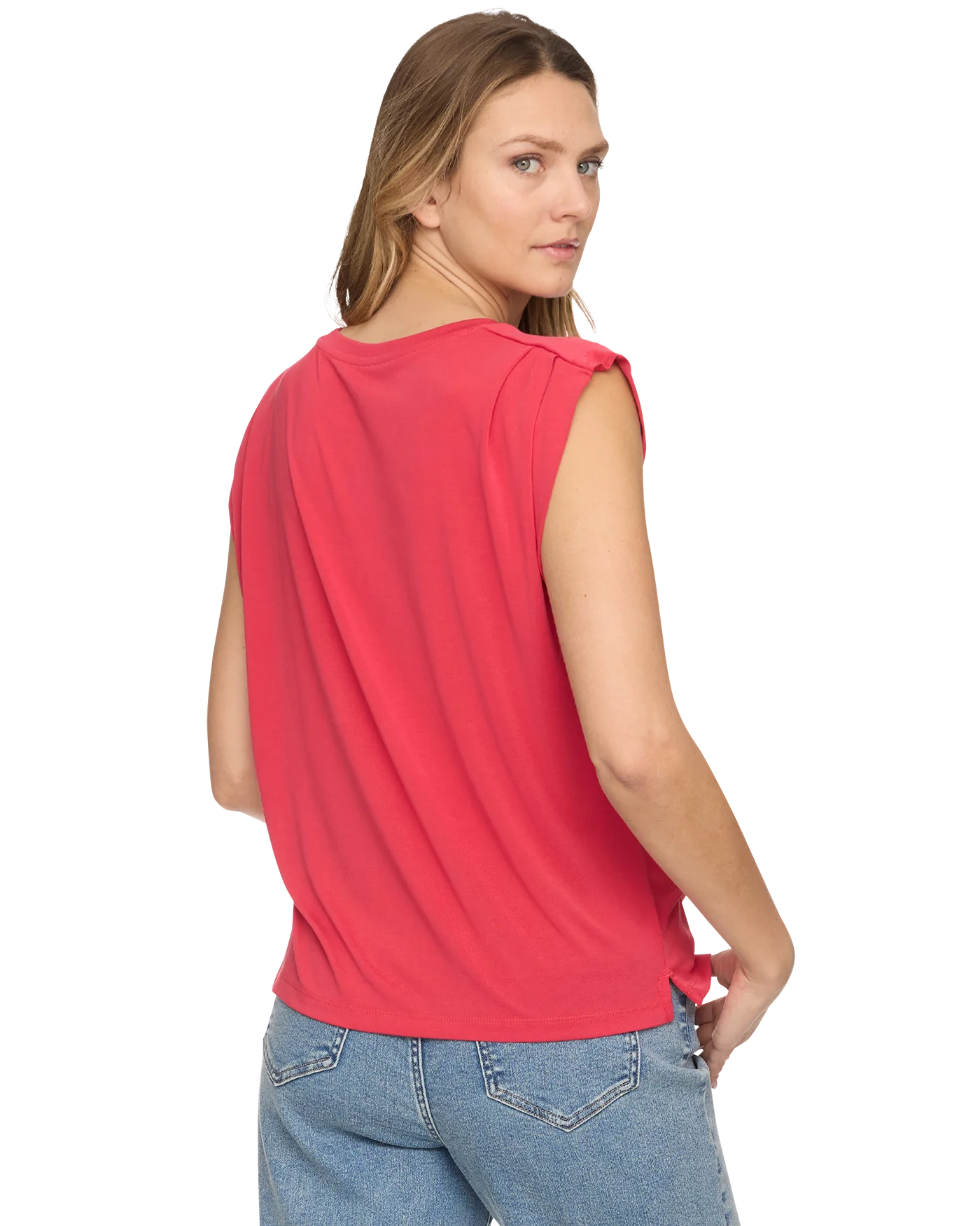 You’ll have an easy, breezy season with our Fresno Sleeveless Tee in your rotation! Light and airy woven fabric with just the right amount of stretch shapes this must-have top that boasts a classic crewneck with binding. A relaxed bodice falls to a straight hem with cute notched accents on the sides. Pair with your favorite high-waisted bottoms and sandals for the perfect warm weather look!