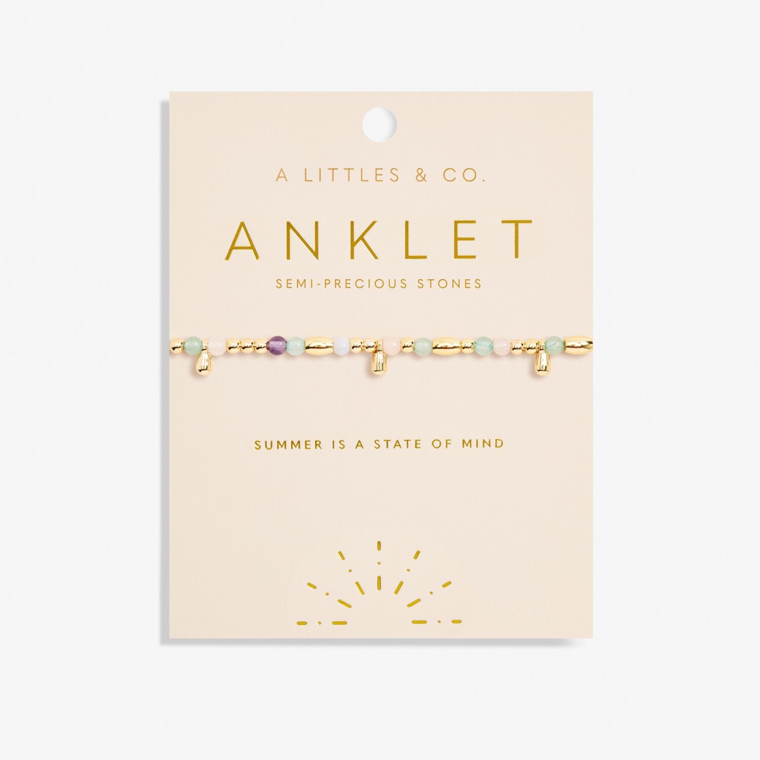 Now threaded with semi-precious gemstones, silver-plated and gold-tone plated charms, and with a stretch design for the perfect fit every time, our pretty anklets are the style you need to kickstart the sunny season. Wrapped around a blush pink and gold card, our Multi Stone Anklet In Gold-Tone Plating comes ready to be gifted or added to your own collection as you make amazing sun-soaked memories.