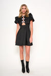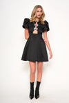 Step out in style with this elegant black and gray houndstooth dress, designed to make a statement. Featuring chic bow accents and short princess puff sleeves, this dress combines classic patterns with modern details. The above-the-knee length adds a flattering touch, perfect for both daytime events and evening occasions. A versatile piece that blends timeless sophistication with trendy elements, ideal for your next wardrobe update.