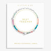 Radiate the best vibes all season long with the Happy Little Moments Collection! Threaded with multicolored natural shells, shining alphabet beads, twinkling charms, and coastal motifs, these beautiful bracelets have been designed with love. Sitting pretty around a buttercream presentation card stamped with a golden sentiment, our Happy Little Moments 'Best Teacher' Bracelet In Silver Plating is the perfect little token to say thank you to a teacher like no other!