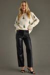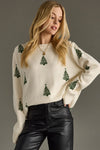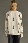 Spread cozy holiday cheer with this ivory knit sweater featuring a charming Christmas tree design on both the front and back. Its relaxed fit and soft knit make it perfect for all your merry moments—from decorating the tree to sipping cocoa fireside.
