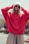 Red Oversized Cotton Knit Sweater