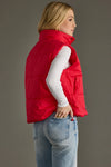 Stay warm and stylish on the go with the World Traveler Vest in vibrant red. Designed with a zipper and snap-front closure, this puffer vest features two side pockets for convenience and an adjustable bungee hemline for a customizable fit.